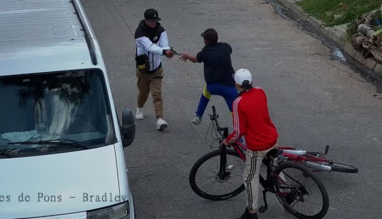 Tal cual indica el video que encabeza esta nota, el reloj marcaba las 13.15 cuando los tres involucrados en el hecho fueron captados por una cámara municipal instalada en la cuadra.