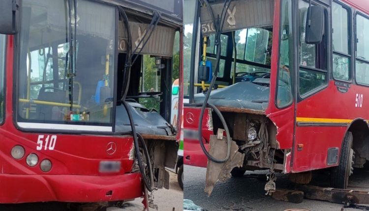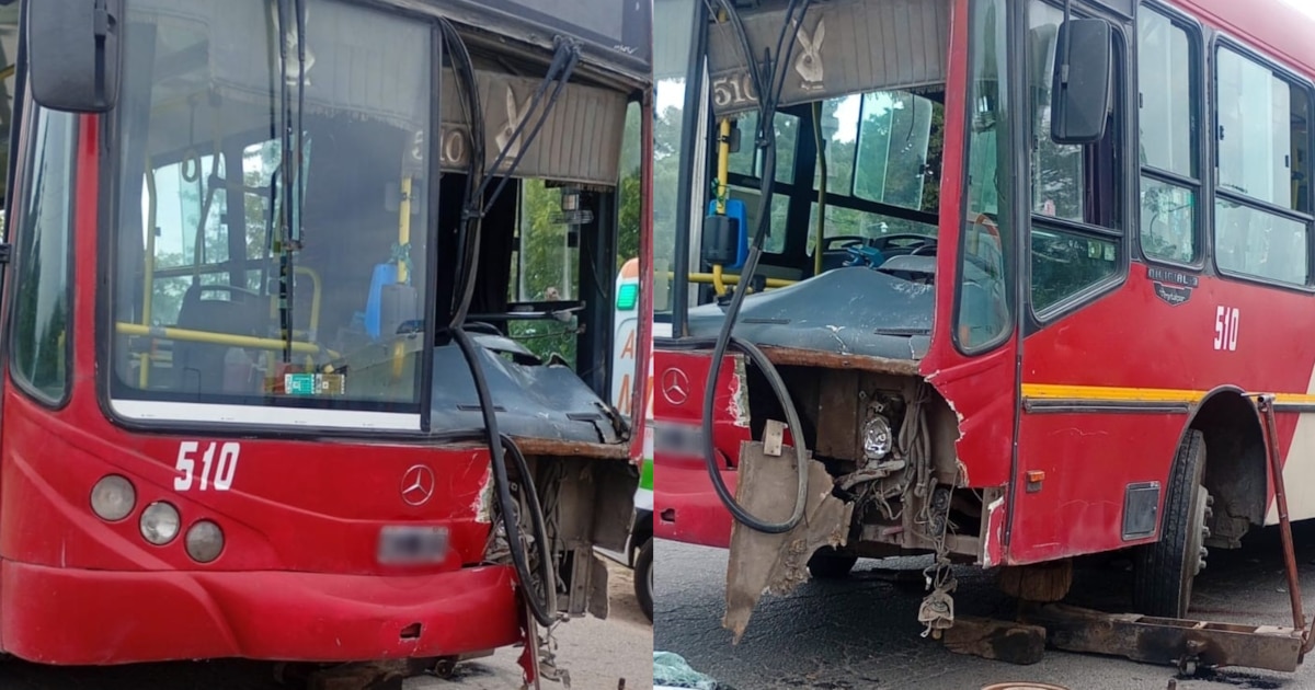 El impacto fue de tal magnitud que, según los pasajeros del transporte, el parabrisas izquierdo quedó destruido y la estructura de la unidad sufrió graves daños.