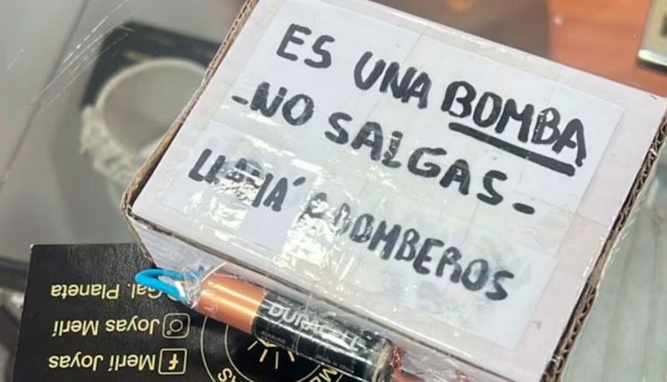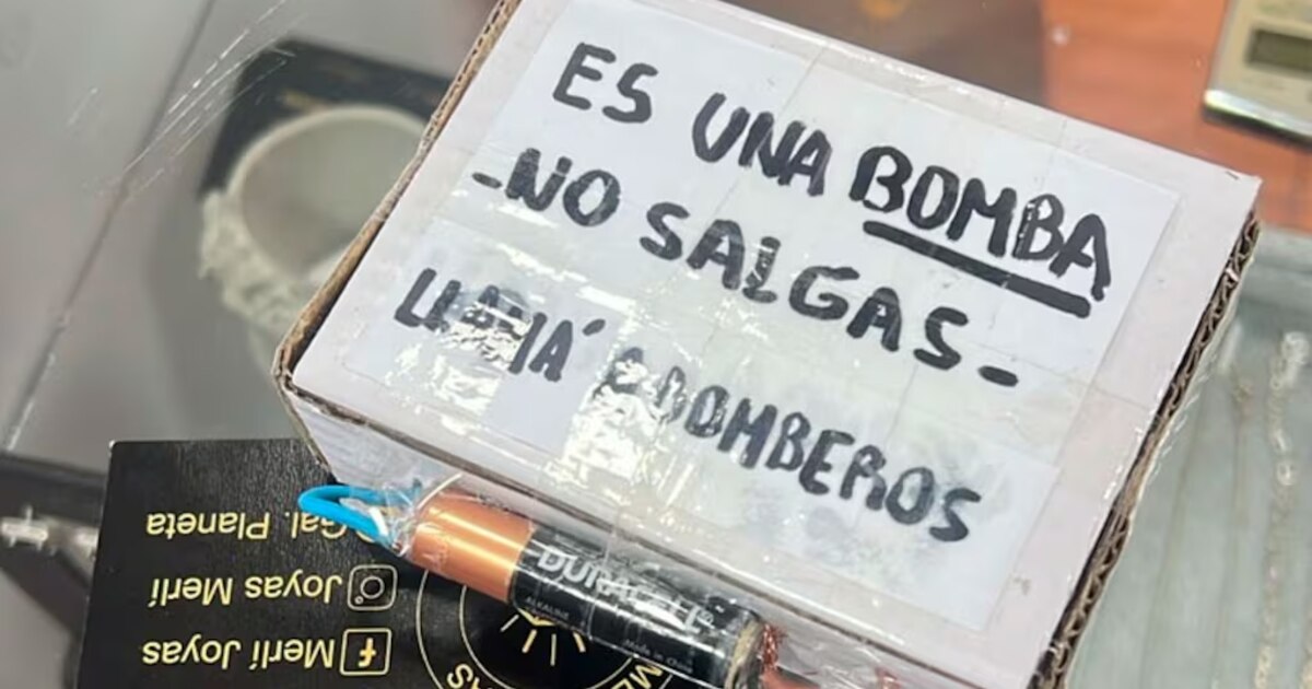 El incidente se originó cuando un hombre ingresó a una joyería simulando ser un cliente y, en un descuido de la empleada, sustrajo dos juegos de pendientes de oro. Al retirarse, dejó sobre el mostrador una caja pequeña que en principio no pareció sospechosa hasta que la mujer leyó la etiqueta de la misma. “Es una bomba, no salgas, llamá a Bomberos”, decía la nota que estaba escrita a mano con color negro y pegada con cinta sobre la tapa.