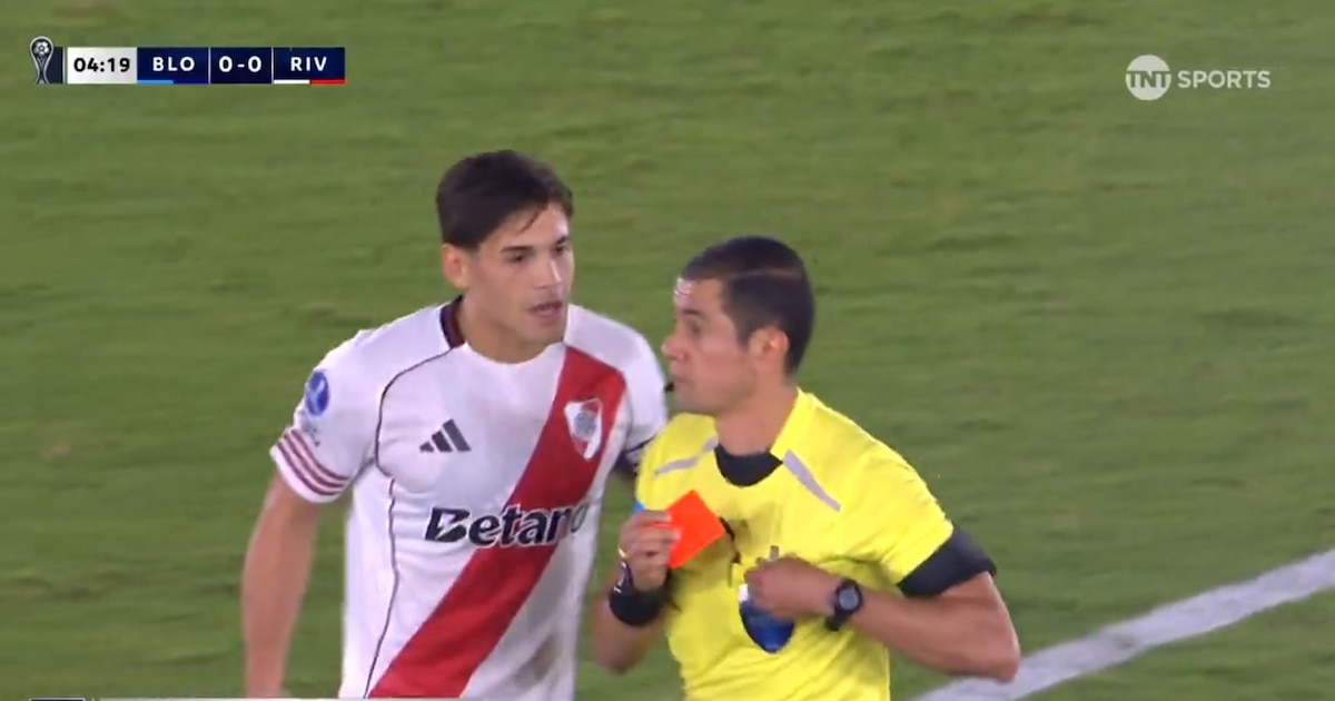 La visita a Blooming por el debut en la Copa Sudamericana arrancó complicado para River Plate: a los cuatro minutos, perdió a Lucas Martínez Quarta, expulsado. Un pelotazo largo desde la propia área del conjunto local derivó en casi un mano a mano de Bayron Garcés con el arquero Santiago Beltrán, debido a que Lautaro Rivero lo habilitó. El jugador de la selección argentina derribó al delantero y, con algo de delay, el árbitro José Rojas Noguera le mostró la tarjeta roja.