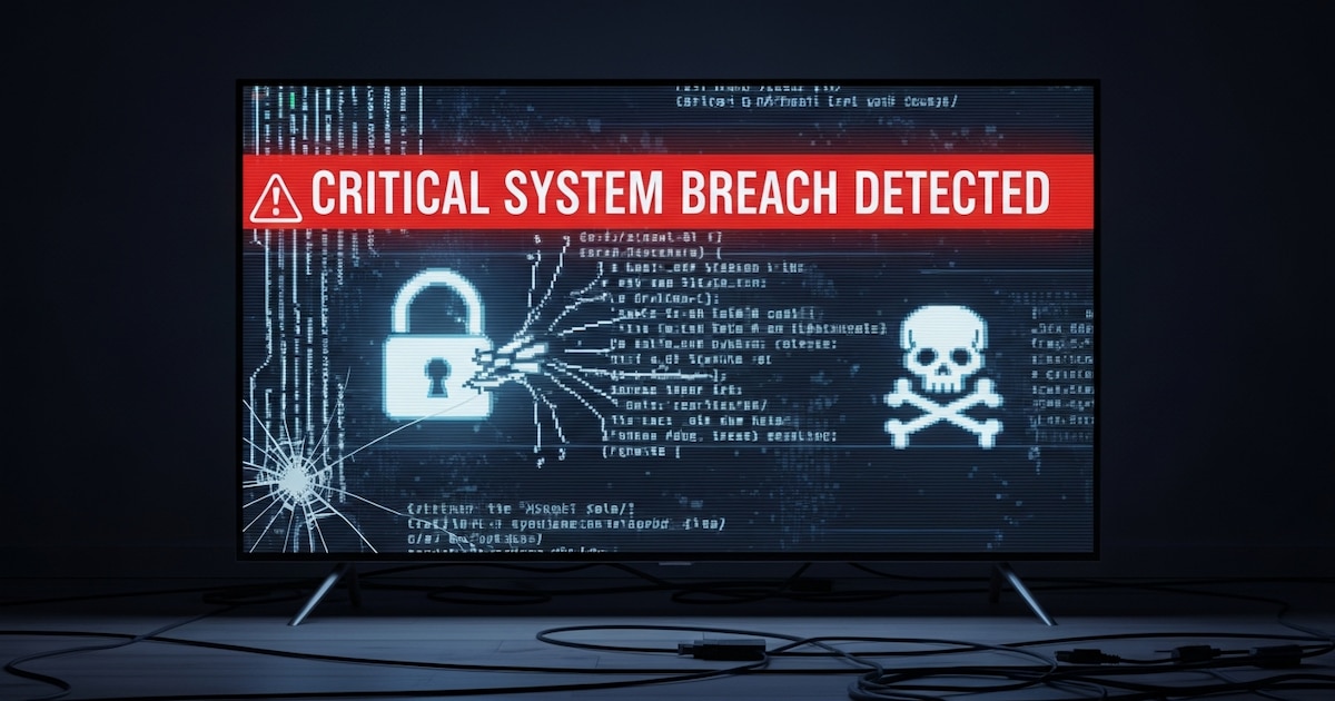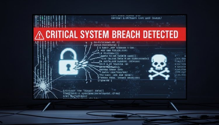 Una pantalla muestra una advertencia de ‘Critical System Breach Detected’